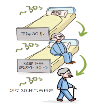 l 患者夜间起床,要打开床头灯,遵循“起床三部曲”,且一定要在有家属陪同情况下起床,切勿擅自行动。