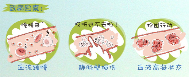 常见于妊娠、产后或术后创伤、肿瘤、长期服用避孕药等情况。外科手术和创伤是并发深静脉血栓形成的常见诱因。可由于血小板计数增高、凝血因子含量增加、抗凝因子活性降低而造成血管内异常凝结成形成血栓。
